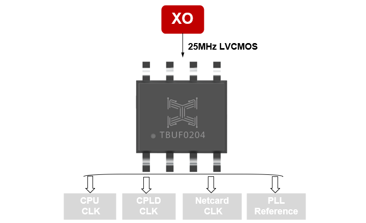 | TBUF0204 | 1.5V/1.8V/2.5V/3.3V | single-ended | LVCMOS | 200MHz | <50fs | 4 | -40℃~85℃ | SOIC8 |